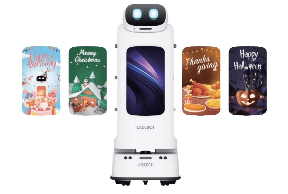 Mit seinem großen Werbedisplay und interaktiven Unterhaltungsmöglichkeiten setzt der Cadebot L100 darüber hinaus neue Standards für Gastronomie und Eventmanagement.