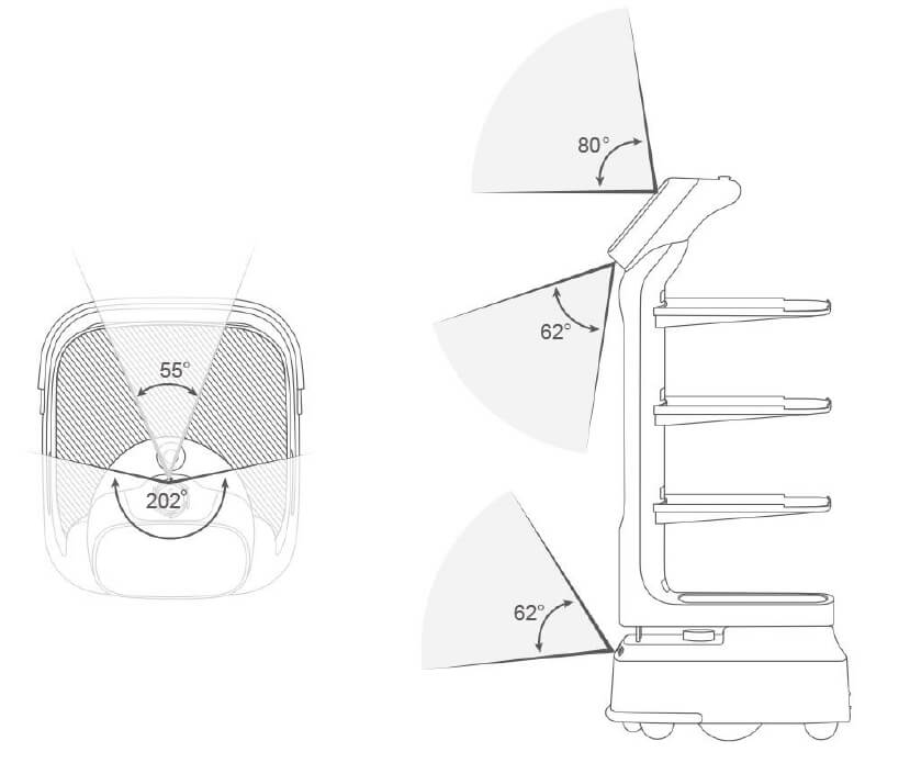 Lidar scannt hinten und vorne. Die Raum-orientierung mit Hilfe von Markern ist möglich, aber nicht notwendig.