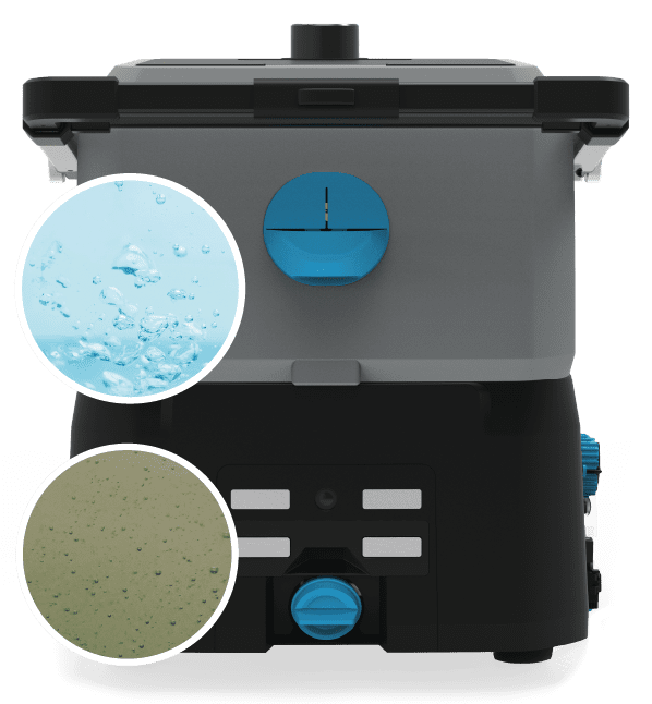 Der Schmutzwassertank lässt sich einfach über die rückseitige Öffnung entleeren.