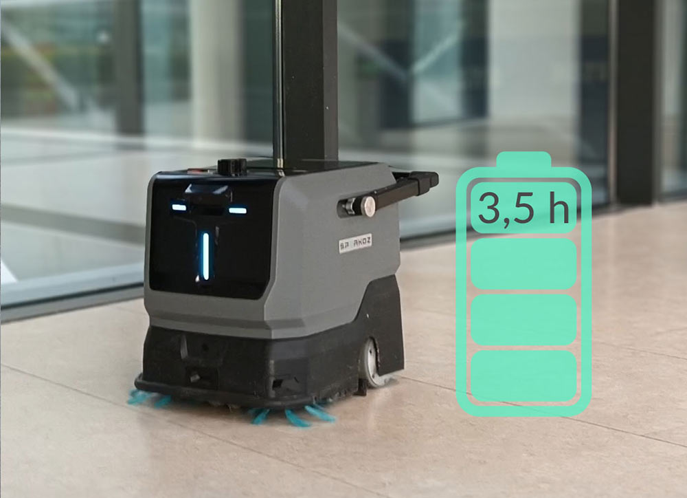 Der Sparkoz TN-10 kann mit einer Akkuladung Flächen bis zu ca. 4.000 m² reinigen. (Anpassen, falls beim Sparkoz TN-10 andere Werte gelten!)